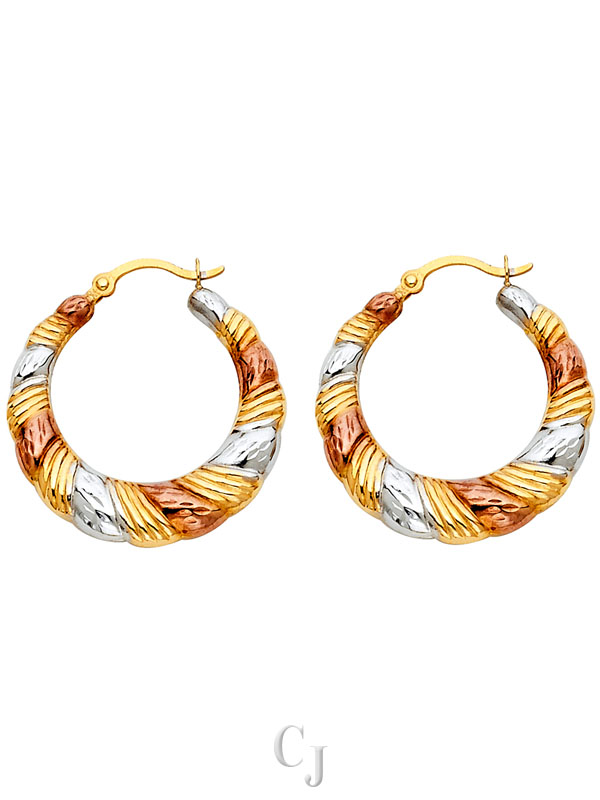 Crafted in 14K yellow, white, and rose gold, these Tri-Color Earrings from Claudia’s Jewelry Inc. offer a distinct yet timeless style. Perfect for adding a touch of elegance and color to any jewelry collection.