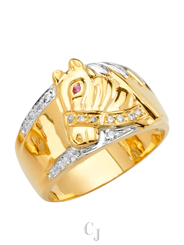 14K 3C Men’s CZ Ring with Horse