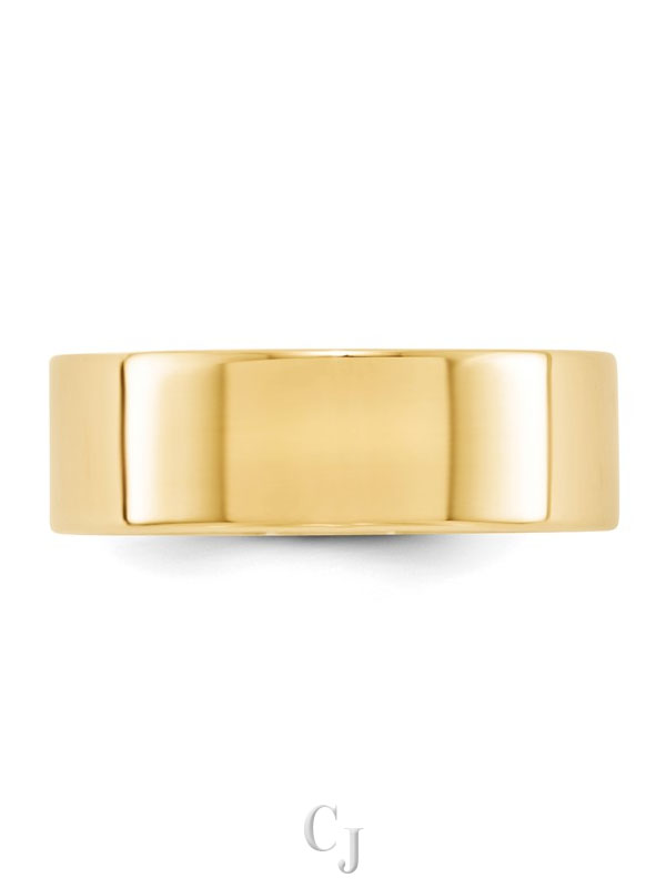 This 14K yellow gold wedding band features a bold 7mm flat profile with a clean, modern design. The lightweight construction ensures a comfortable fit for everyday wear, while the polished finish adds timeless shine. Ideal for those who want a sleek, stylish band with classic appeal.