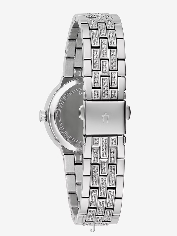 BULOVA CRYSTAL ACCENT MOTHER OF PEARL DIAL STAINLESS STEEL WOMEN’S CLASSIC BOX SET 96X163