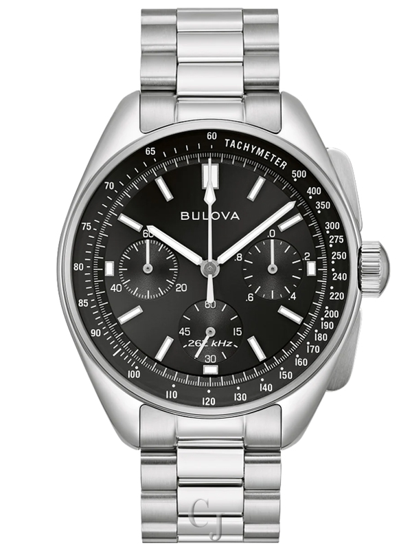 On August 2, 1971, a Bulova chronograph was worn on the moon, engineered by Bulova for the demands of the lunar environment. Now, Bulova returns to the design and updates it with an exclusive high precision quartz movement, continuing its legacy of precision timing with the men’s Bulova Lunar Pilot chronograph from the Archive Series. The Lunar Pilot chronograph features the same 43.5mm silver-tone stainless steel case as the original Bulova Lunar Pilot chronograph. Slim chronograph pushers and a crown featuring the Bulova tuning fork logo are positioned at 3 o’clock. Under the flat sapphire crystal, the six-hand chronograph dial is rendered in a deep black evocative of space, with stark white accents including the tachymeter ring and retro Bulova logo. The slim hands and applied markers offer exceptional legibility and are applied with super luminova for low-light display. The recessed, circular grooved sub-dials include a 1/20 chronograph seconds counter at 3 o’clock, running seconds at 6 o’clock, and a 60-minute chronograph counter at 9 o’clock. The Lunar Pilot is powered by Bulova’s proprietary high precision quartz movement, resonating at a frequency of 262khz for unparalleled accuracy. The watch is paired with a matching 3-link silver-tone stainless steel bracelet with a push-button deployant clasp and a NATO leather strap, both of which feature an easy release system for quick changes. The Bulova Lunar Pilot brings the past to the present with a design from space exploration history, perfect for the modern adventurer.