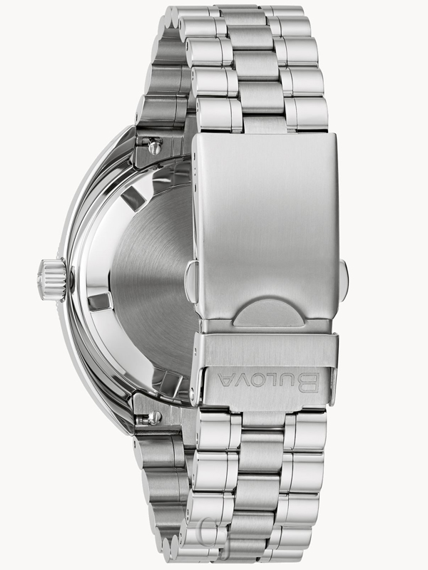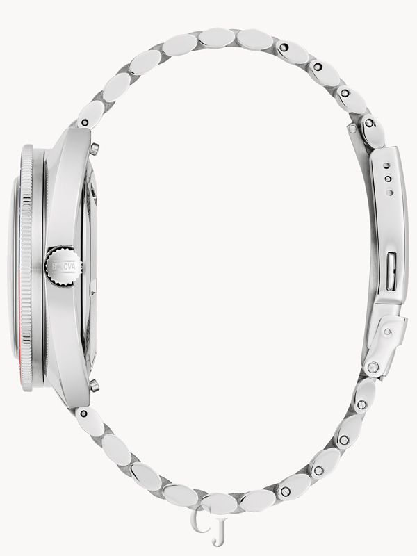 With the new men’s Oceanographer GMT, Bulova brings exceptional functionality to one of its iconic designs. The stainless-steel case features a curved silhouette, a box sapphire crystal, a blue-and-red bidirectional rotating 24-hour bezel, and a screw-down crown providing 200m of water resistance. A brilliant blue dial is accented by tasteful pops of red, with applied luminescent hour markers, bold hands including a 24-hour hand and featuring luminescent paint, and a date display. An independently adjusted hour hand allows for easy setting of the local time. The Oceanographer GMT is powered by a self-winding GMT movement with 24-jewels and a power reserve of 42 hours, protected by a screw-down caseback. Paired with a matching five-link bracelet with a sport foldover clasp. Eminently wearable and classically designed, this men’s Bulova timepiece is ready to keep up, wherever you go.