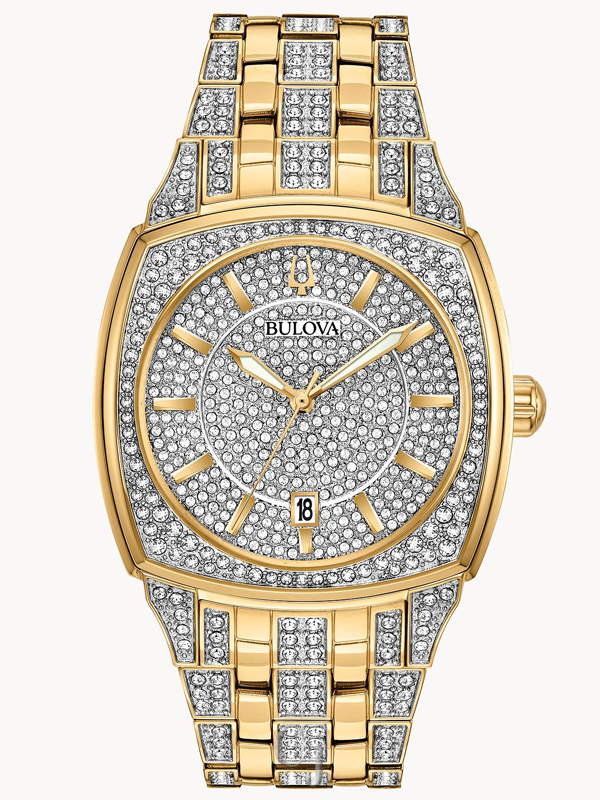 BULOVA PHANTOM GOLD CRYSTAL STAINLESS STEEL WATCH 98B323