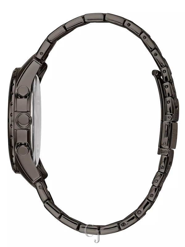 This Caravelle by Bulova men’s watch showcases a gunmetal dial complete with three chronograph sub-dials, luminous hands, and markers, all housed in a 44.0mm gunmetal ion-plated stainless steel case. Its dependable Japanese quartz movement ensures precise timekeeping. The gunmetal ion-plated stainless steel link bracelet is secured with a double-press fold-over clasp. With water resistance up to 30 meters, this watch is backed by a three-year limited manufacturer warranty. As an authorized Caravelle by Bulova dealer, we guarantee its authenticity.