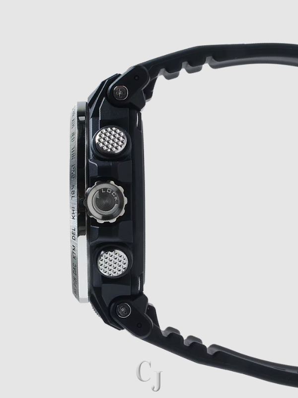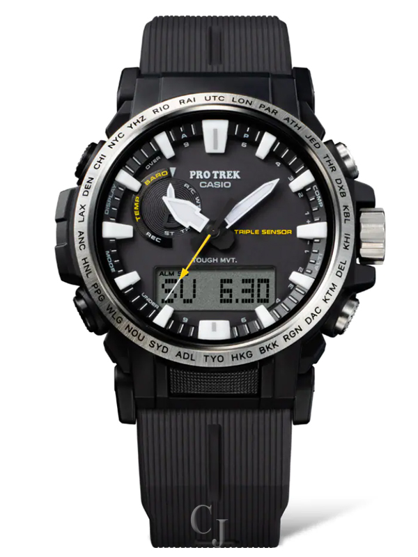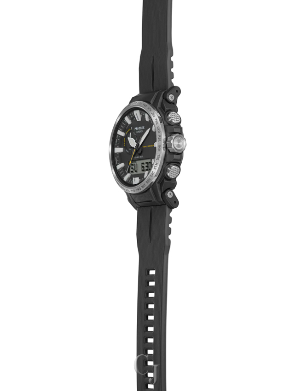 For the first time in a PRO TREK or any Casio watch, the case and band are made from eco-friendly biomass plastics instead of conventional resins. The use of biomass plastics also delivers uncompromising resistance to hard use as well as comfort on the wrist. We are proud of this new material application for our line of premiere outdoor tools, PRO TREK.