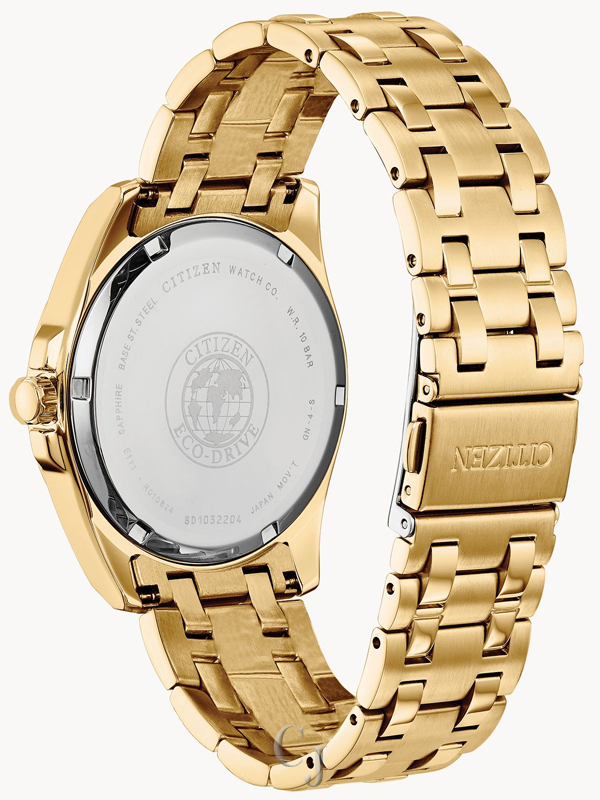 This Citizen Corso collection offers timepieces that are accented with vibrant diamond hour markers in a combination of functional simplicity with a touch of elegance. This timepiece, featured with a gold-tone stainless steel case and bracelet, adds an extra touch with the azure blue dial. Featuring our Eco-Drive technology – powered by light, any light. Never needs a battery. Caliber number E111.