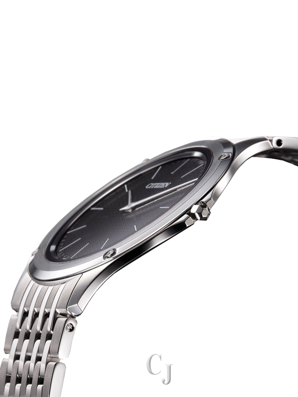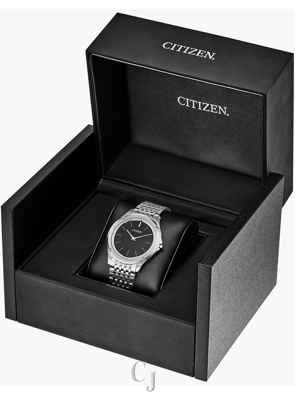 The line between design and technology just got smaller. Incredibly thin and the first of its kind, the Eco-Drive One has arrived in celebration of Citizen’s 40 years of Eco-Drive Technology. It is the world’s thinnest light powered watch at just 2.98mm*. The well thought out design of this timepiece is reflected in the detail of the watch components, with 85 components in a movement 1.00mm thin. This model features a 10 month power reserve, stainless steel case and bracelet with Duratect (surface hardening technology), black sapphire crystal dial with cermet (ceramic + metal) bezel and anti-reflective sapphire crystal. *Dimensions are nominal. Actual product size may be up to .22mm thicker. Caliber number 8826.