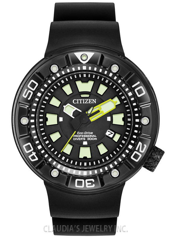 Proof that a dive watch can be fun & functional with the CitizenĀ® ISO-compliant Promaster Professional Diver.The case is stainless steel with DLC ( diamond-like coating) making it more scratch resistant and able to handle the wear and tear of your next dive trip. Features include one-way rotating elapsed time bezel, helium release and luminous hands and markers. With Eco-Drive technology, it is powered by light and never needs a battery, so you’ll never need to open your caseback making sure your watch stays factory sealed and water-resistant. Citizen Eco-Drive technology harnesses the power of light āfrom any natural or artificial light source ā and converts it into energy which is stored in a permanently rechargeable lithium-ion cell. It recharges continuously in any kind of light to run forever.
