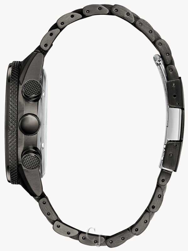 Style meets function in the Citizen Nighthawk with a sporty appeal. Designed with a granite ion-plated stainless steel case and bracelet with a charcoal gray dial with red accents, the advanced features include a 1/5 second chronograph that measures up to 60 minutes, 12/24 hour time, and a tachymeter that measures speed based on time traveled over a distance. This must-have men’s watch also features a screw-down crown, a safety foldover clasp with push button, and water resistance to 200 meters. Made with our proprietary Eco-Drive technology that’s sustainably powered by any light and never needs a battery, this versatile men’s watch becomes your weekday to weekend wardrobe staple. Caliber number B620.