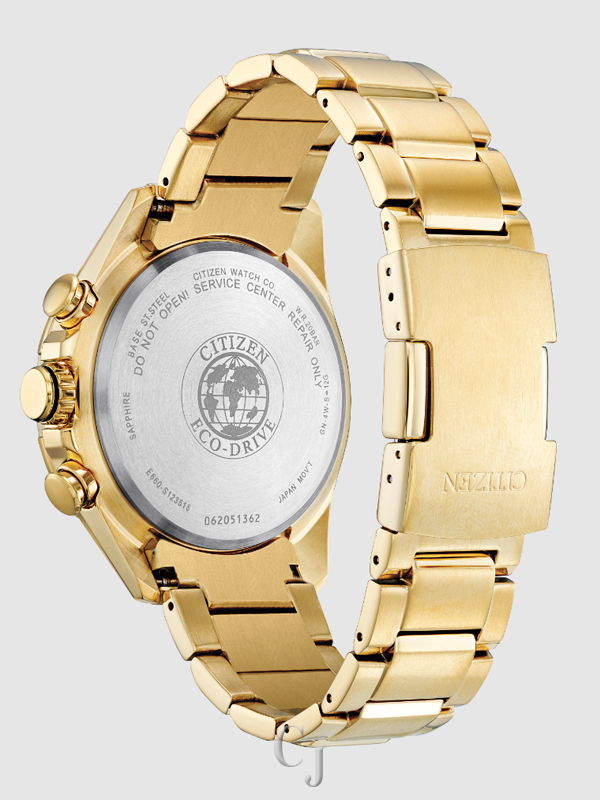 The PCAT from Citizen is an updated take on an iconic design, with refreshed features and design aesthetic, while maintaining the classic dial for this iconic collection. Features include the Tachymeter bezel, a world timer, perpetual calendar, power reserve indicator, chronograph, atomic timekeeping with synchronized time adjustment in 43 cities worldwide and radio control. It has a gold-tone stainless-steel band and 43mm case, with a black dial for a timeless look that can be dressed up or down. Add in Eco-Drive technology for a functional watch that will always be in style.