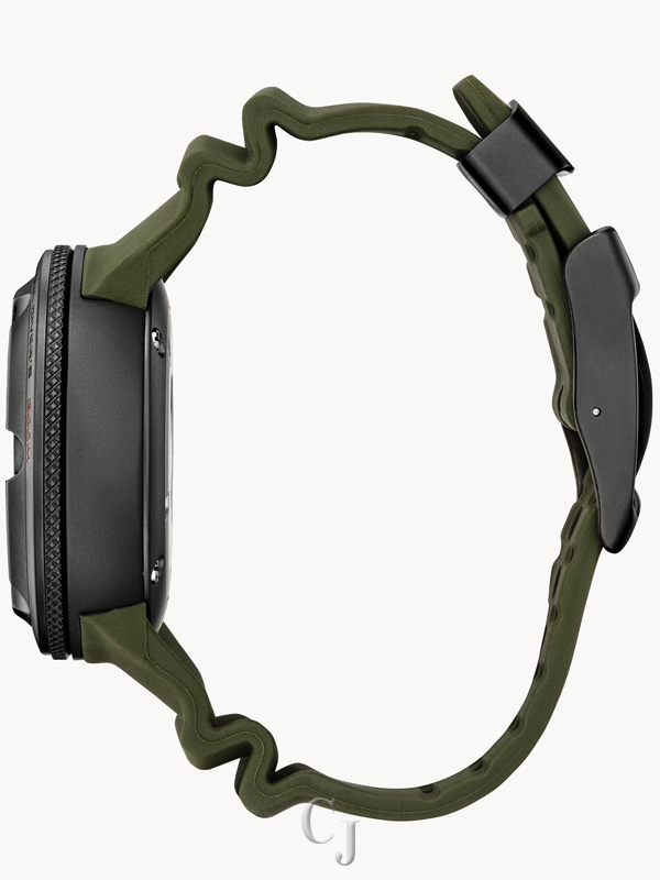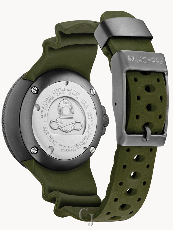 Explore the deepest depths with Citizen’s newest Promaster Dive with water resistance up to 300 meters. This iconic men’s high-performance dive watch features a black stainless steel case, a green 3-hand dial with luminous hands and markers for superior legibility, and a durable, green polyurethane strap for lightweight comfort. Sustainably powered by light with Eco-Drive technology and never needs a battery, this ultimate diver watch comes in an exclusive scuba tank-inspired box for the serious diver and collector. Caliber number B873.