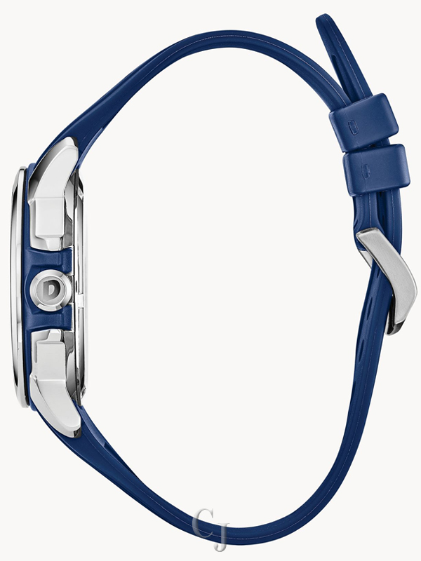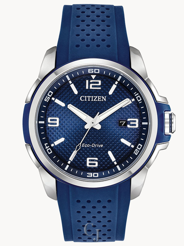 Take action and show your inner drive with the sporty styling of the CITIZEN AR, powered by light with Eco-Drive technology. Featured with a stainless steel case with midnight blue chroma finishing accents , midnight blue polyurethane strap and dark blue dial with date. Featuring our Eco-Drive technology – powered by light, any light. Never needs a battery. Caliber number J810.