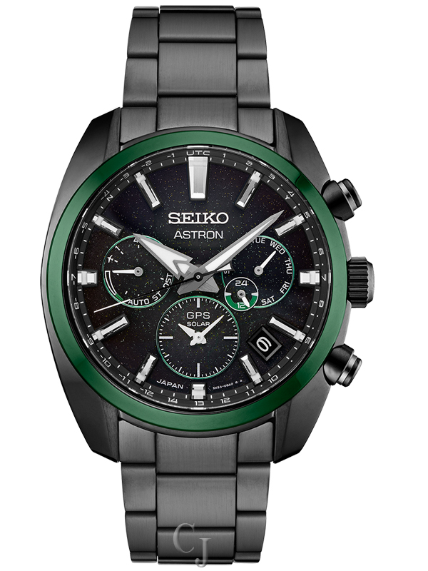 SEIKO ASTRON GPS SOLAR DUAL TIME GREEN CERAMIC BEZEL SSH079
