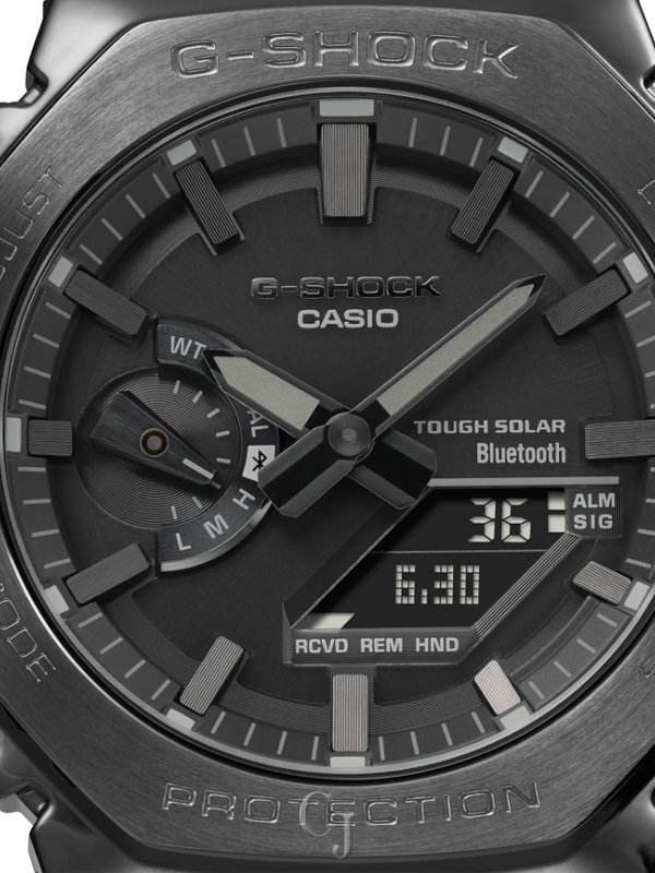 Luxe full-metal construction with a screw-back case, bezel, and band crafted in stainless steel creates a streamlined, minimalist design, while protecting the module from impact when dropped. We take it way back with the octagonal bezel and dimpled band design of the original from 1983, all done in metal.