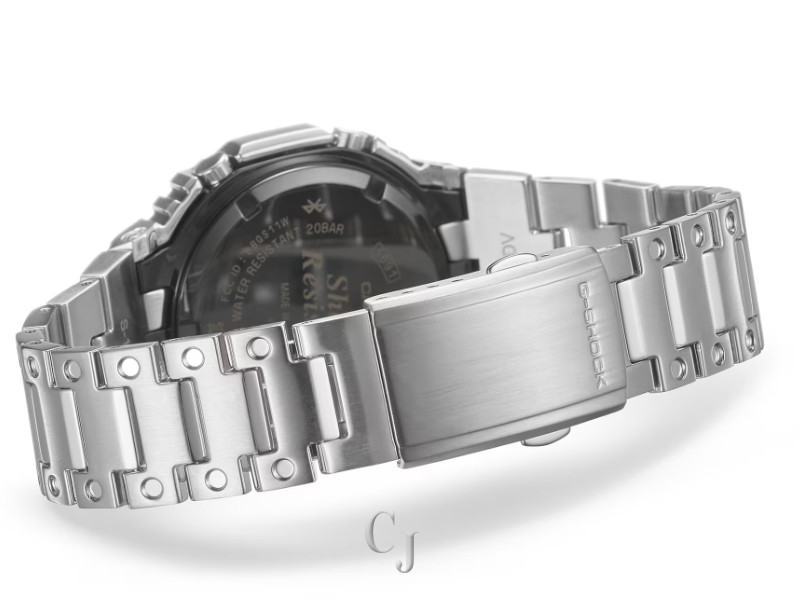 Luxe full-metal construction with a screw-back case, bezel, and band crafted in stainless steel creates a streamlined, minimalist design, while protecting the module from impact when dropped. We take it way back with the octagonal bezel and dimpled band design of the original from 1983, all done in metal.