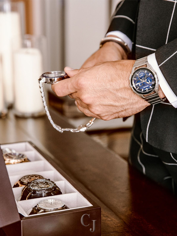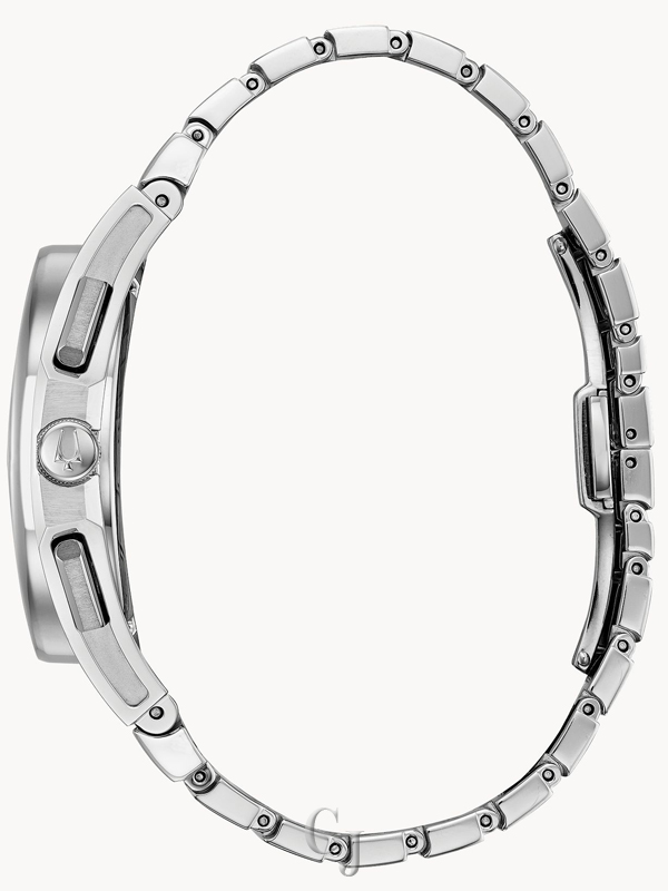 From the CURV Collection. The worlds first curved chronograph movement features high-performance quartz technology with 262 kHz vibrational frequency for precise accuracy. Five-hand chronograph in stainless steel with dark blue dial with silver-tone hands and markers, exhibition case back, anti-reflective curved sapphire glass, screw-back case, stainless steel bracelet with double-press deployment closure, and water resistance to 30 meters.