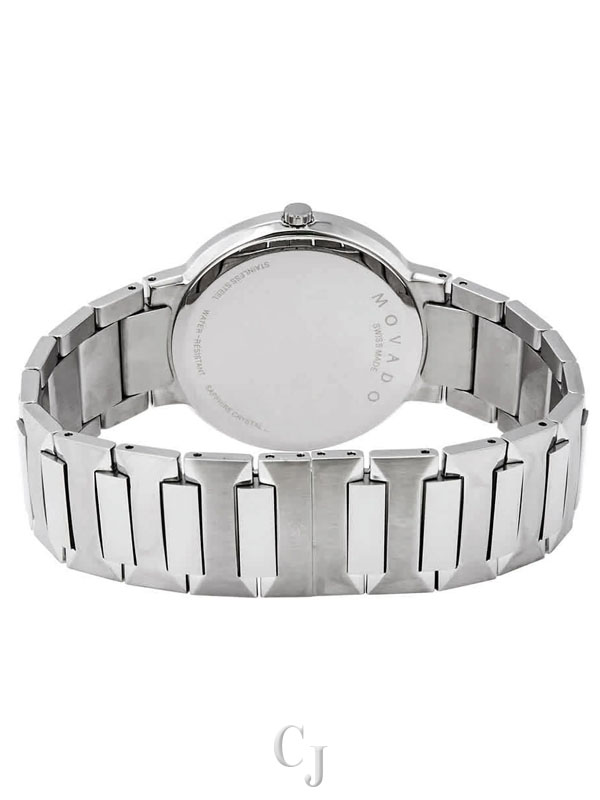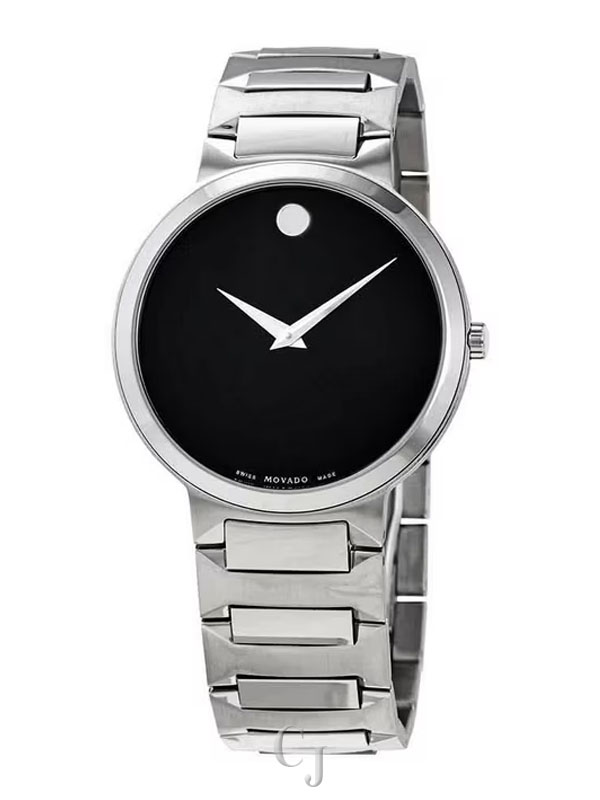 The Movado Temo Men’s Watch (Model 0607292) is a bold and refined timepiece that captures the essence of Swiss craftsmanship and Movado’s iconic minimalist design. Featuring a 38mm round stainless steel case, it showcases a sleek black dial accented by a gold-tone signature dot at 12 o’clock for a timeless Museum aesthetic. A scratch-resistant sapphire crystal ensures clarity and durability, while the battery-powered quartz movement offers precise, low-maintenance timekeeping. The silver-tone stainless steel bracelet, secured with a deployment clasp, adds a polished finish. Water-resistant up to 30 meters (100 feet), this watch is perfect for everyday elegance.