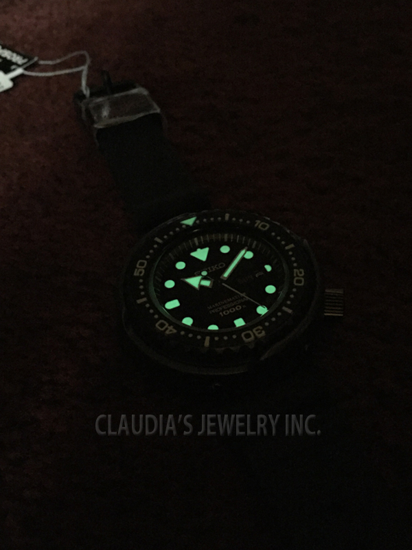 Caliber 7C46, Sapphire crystal with anti-fogging coating, Screwdown crown, Silicon strap, Water Resistance: Professional Diver’s Watch 1000 meters (3300 feet). Meets ISO standards and is suitable for scuba diving. Case Diameter: 49.4mm Zirconia Ceramic Outer Case,Titanium Black IP Bezel.