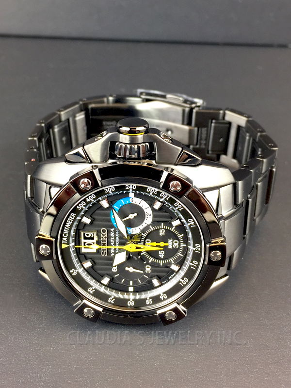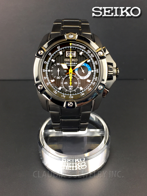 SEIKO VELATURA CHRONOGRAPH BLACK DIAL WATCH SPC073